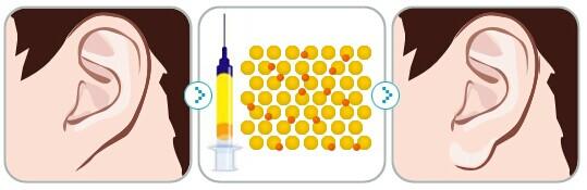 在身体的隐蔽部位,用专门的器械提取自身脂肪或,经提纯活化后埋入耳垂;手术时间大约30分钟至1小时;手术采用局部麻醉的方法。